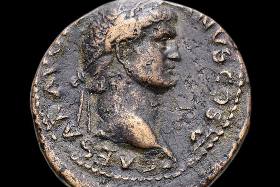 inversion.1: obverse: Domitian's head {profile; rightward; laureate-diademed}; CAESAR·AVG·F·DOMITIANVS·
