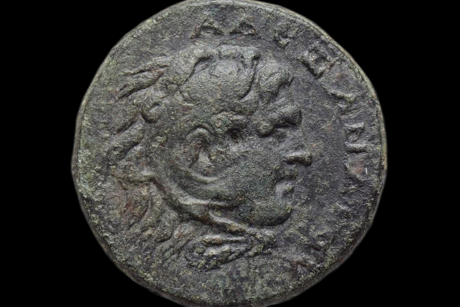 inversion.1: obverse: Alexander the Great's head {profile; rightward; wearing lion-skin headdress}; ΑΛΕΞΑΝΔΡΟΥ [legend]