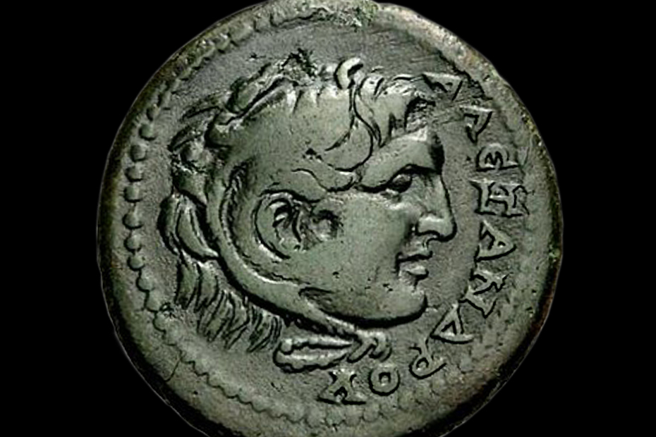 inversion.1: obverse: Alexander the Great's head {profile; rightward; wearing lion-skin headdress}; ΑΛΕΞΑΝΔΡΟΥ [legend]