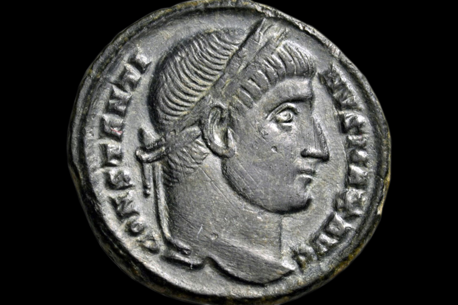 inversion.1: obverse: Constantine the Great's head {profile; rightward; laureate-diademed}; CONSTANTI·NVS·MAX·AVG [legend]