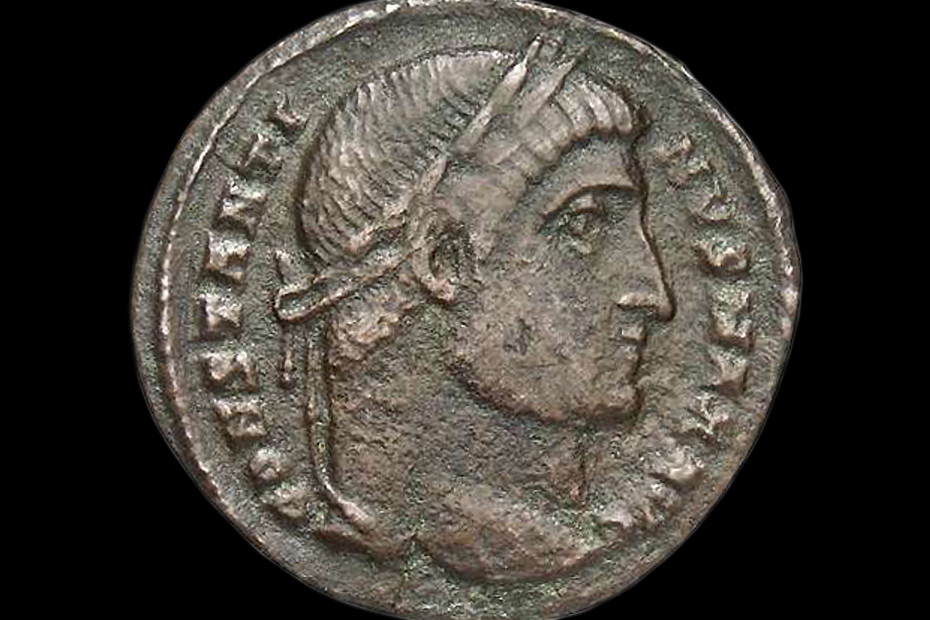 inversion.1: obverse: Constantine the Great's head {profile; rightward; laureate-diademed}; CONSTANTI·NVS·MAX·AVG [legend]