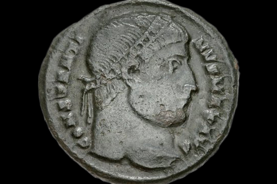 inversion.1: obverse: Constantine the Great's head {profile; rightward; laureate-diademed}; CONSTANTI·NVS·MAX·AVG [legend]